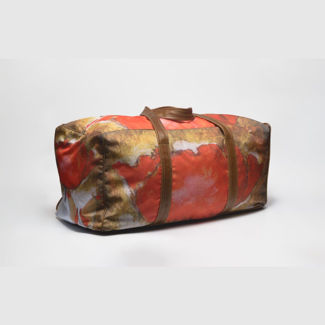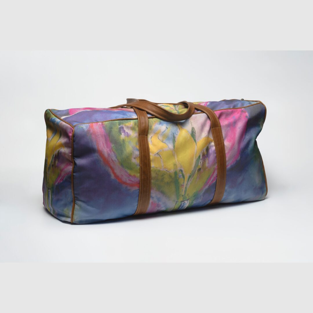 The duffel bag that is distinguished with Michael Heyns Applied Art print.